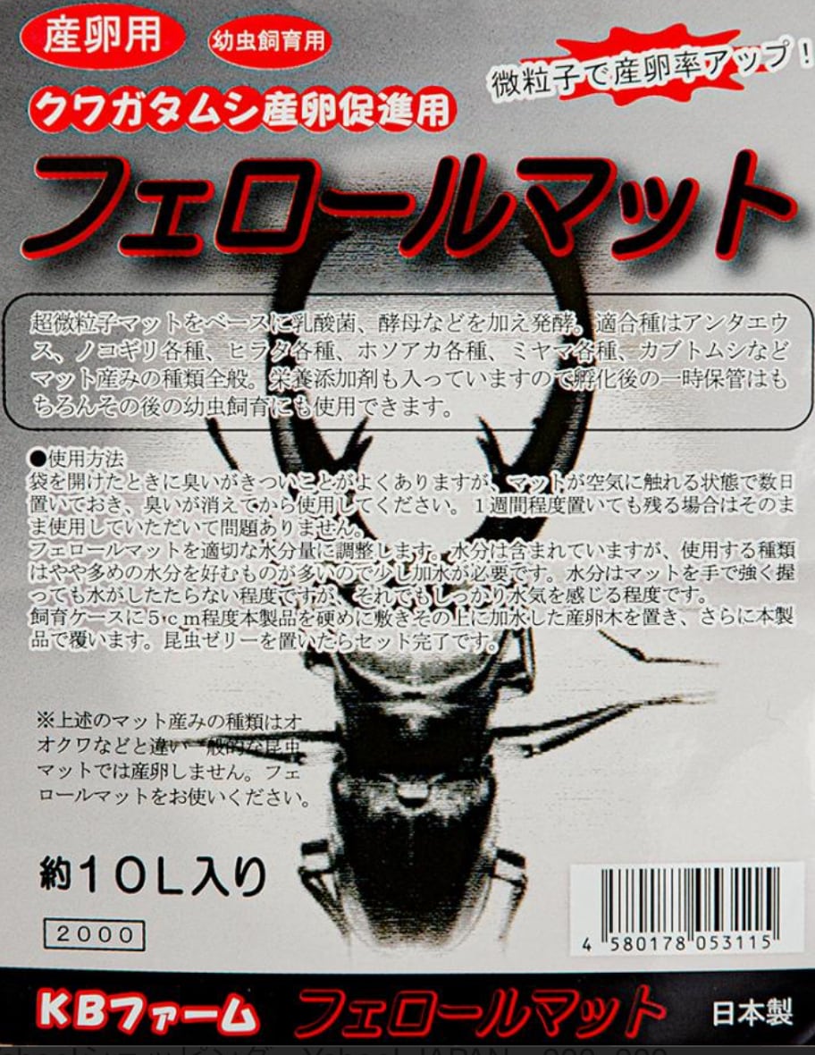超微粒子の産卵促進用マット。厳選した微粒子マットをベースに乳酸菌や酵母などの微生物を加え発酵。クヌギ100%。